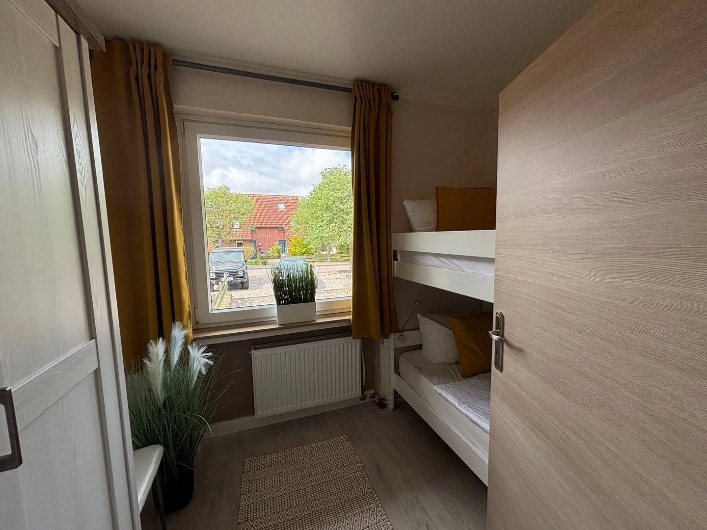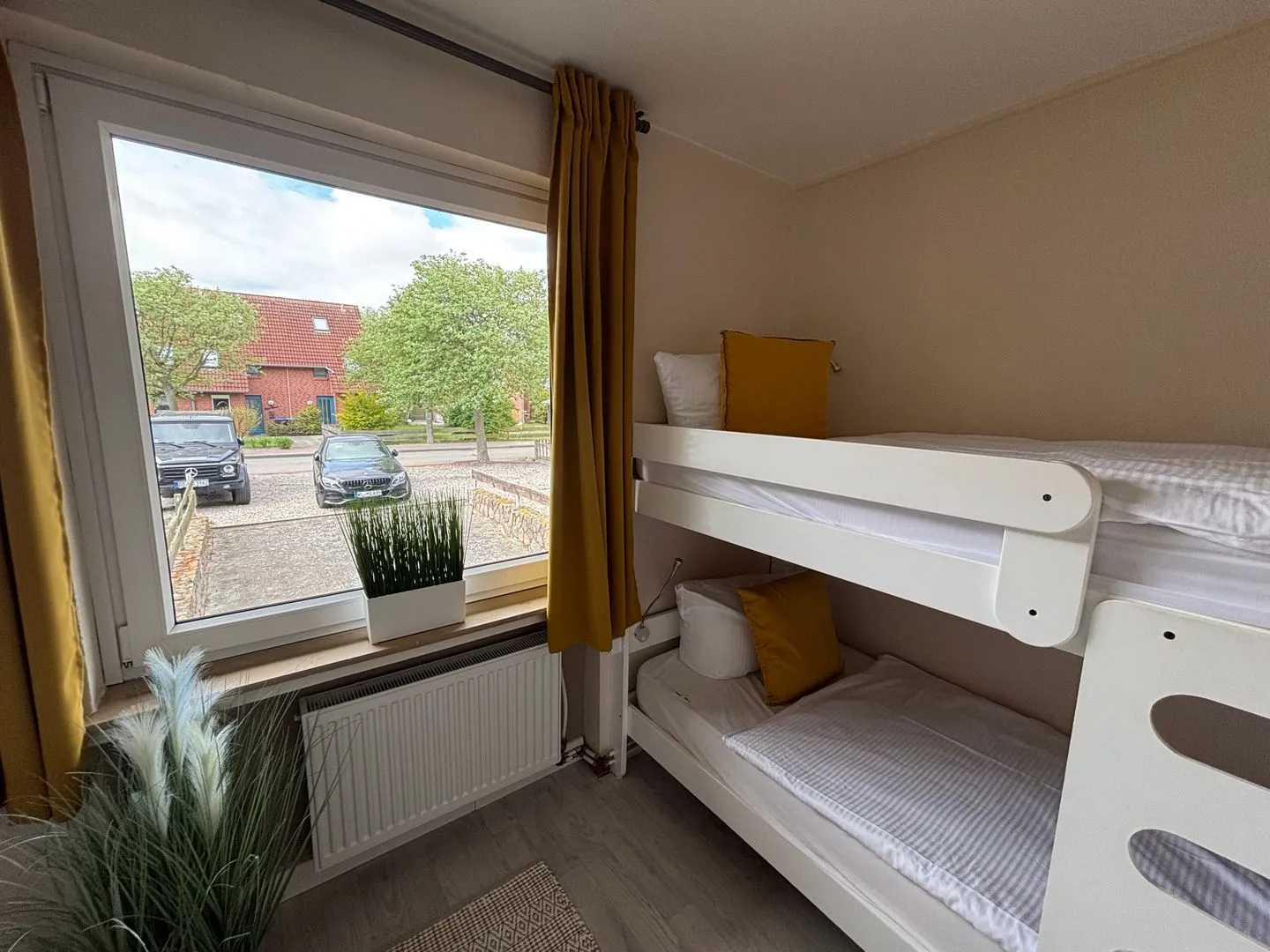 Zwei Schlafzimmer. Ein Schlafzimmer mit Hochbett. Ein Schlafzimmer mit zwei Einzelbetten. Maße 0,90 m x 2,00 m. Erholsamer Schlaf.