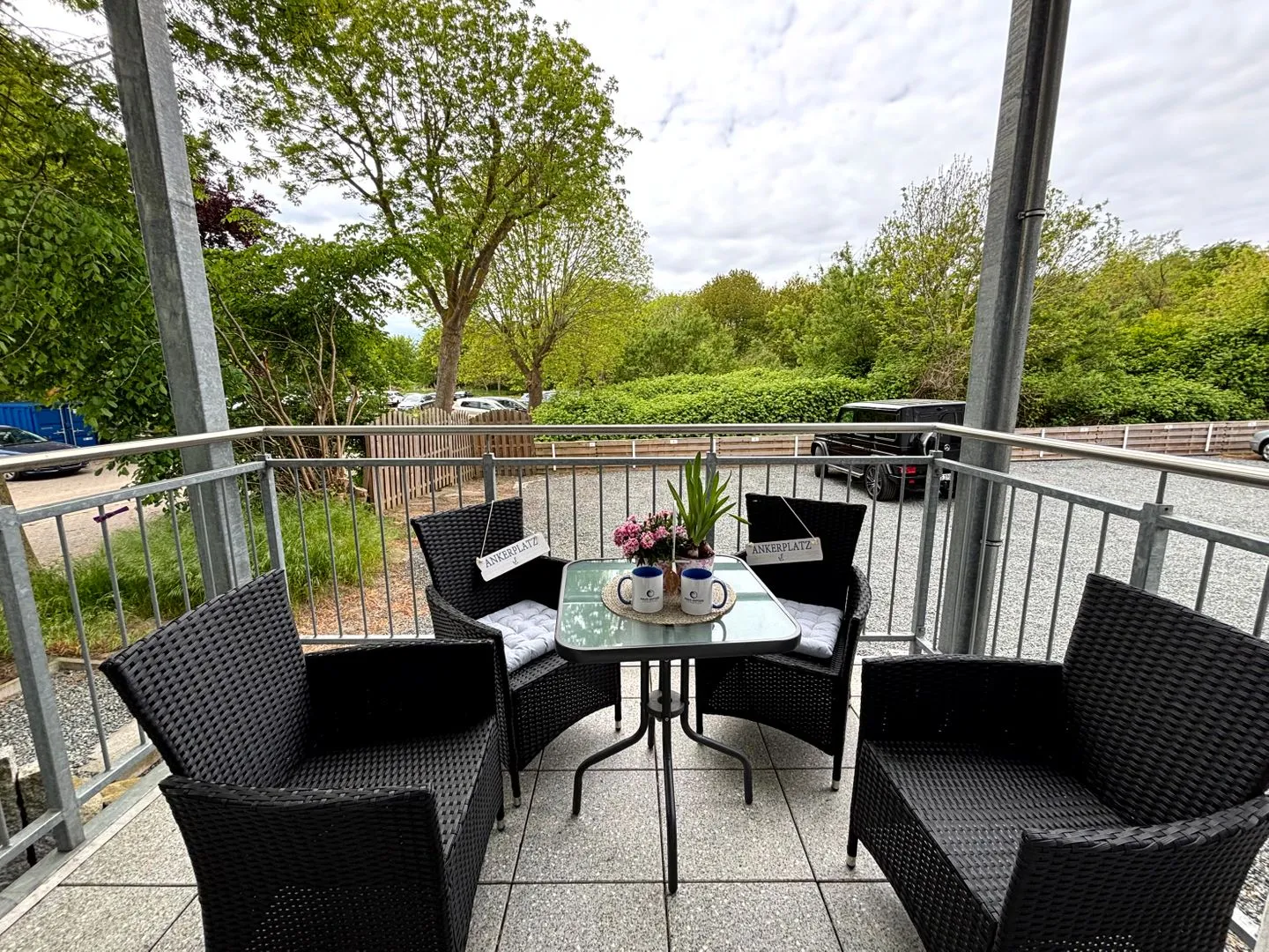 Überdachter Balkon für ein entspanntes Frühstück an der frischen Meeresluft.