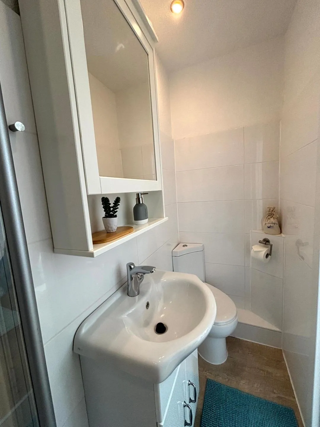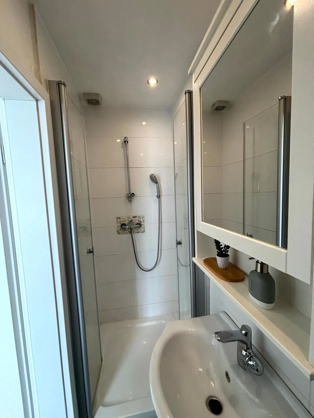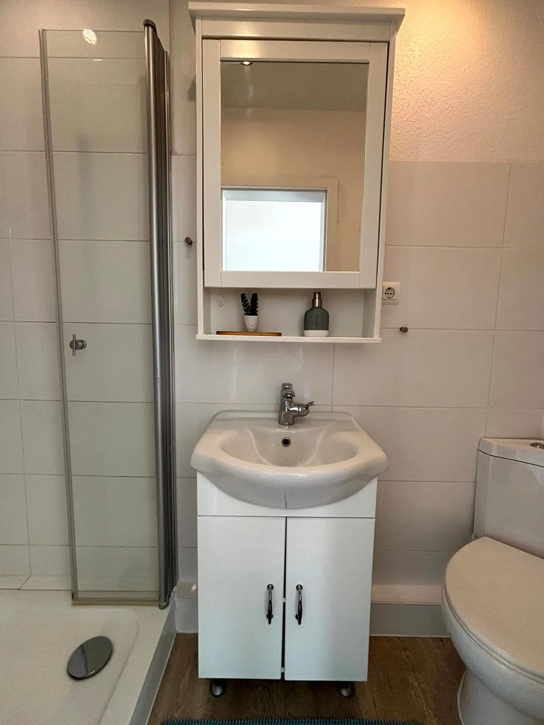 Kompaktes Bad mit Dusche. WC. Waschbecken.