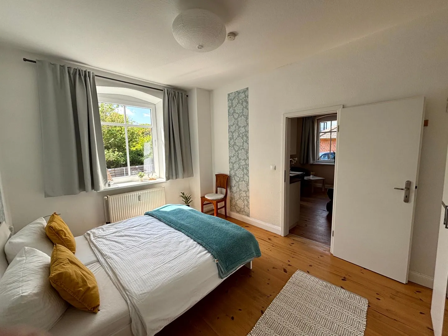 Separates Schlafzimmer. Komfortables Doppelbett. Maße 1,60 m x 2,00 m. Erholsamer Schlaf.